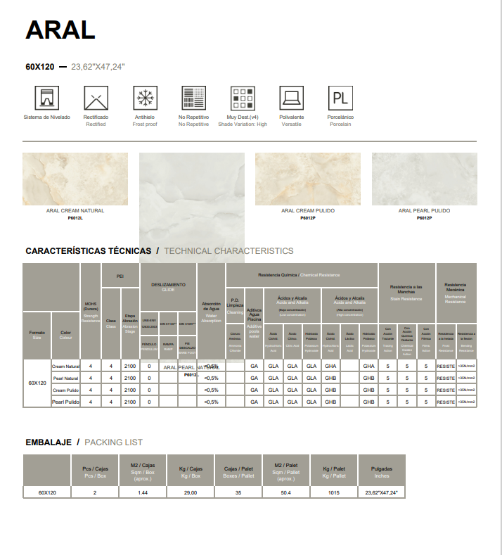 ΠΛΑΚΑΚΙ ARAL PEARL NATURAL 60×120 ΙΣΠΑΝΙΑΣ