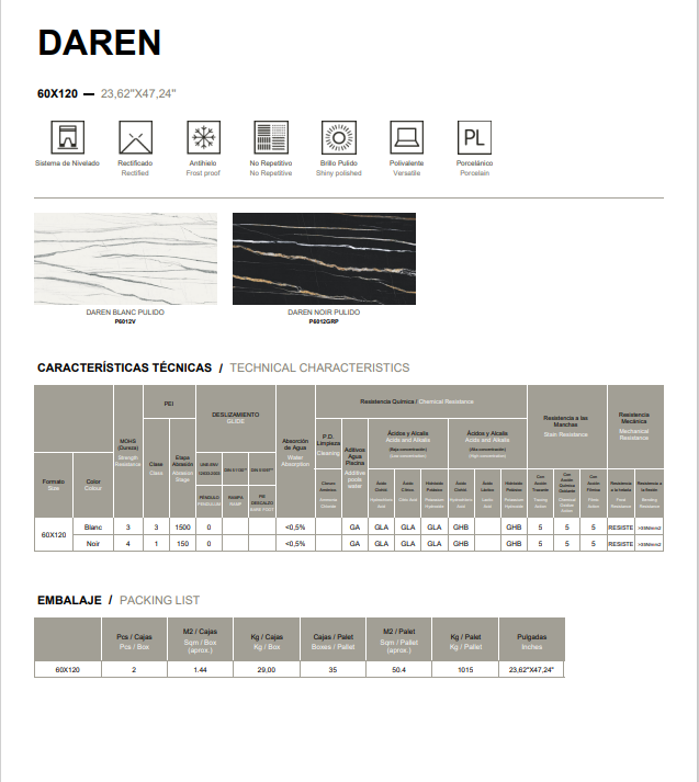 ΠΛΑΚΑΚΙ DAREN BLANC PULIDO 60×120 ΙΣΠΑΝΙΑΣ